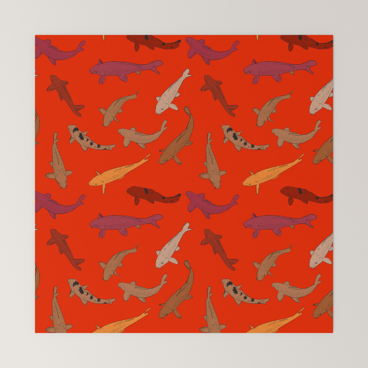 Koi Carp Brown Orange Yellow Black Outline On Red Background Mini Art Print By Ekaterinap Society6