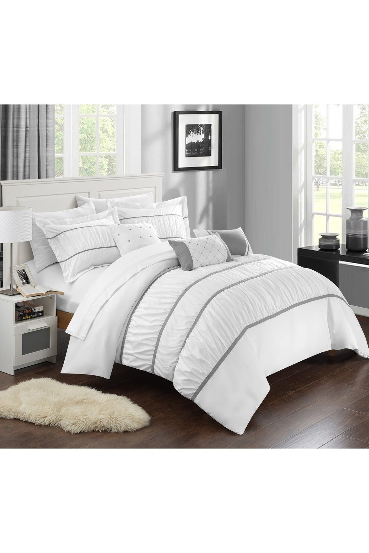 Chic Home Bedding Aero Pleated Ruffled Queen Bed In A Bag Comforter 10 Piece Set White Nordstrom Rack