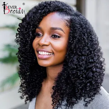 Ever Beauty Perruque U Part U Part Cheveux Naturels Mongols Coupe Bob Coupe Courte Afro 3b 3c Pour Femmes Noires Leather Bag