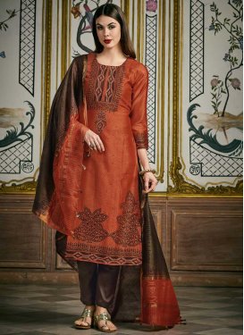 Fancy Work On Off White Cotton Readymade Designer Salwar Suit