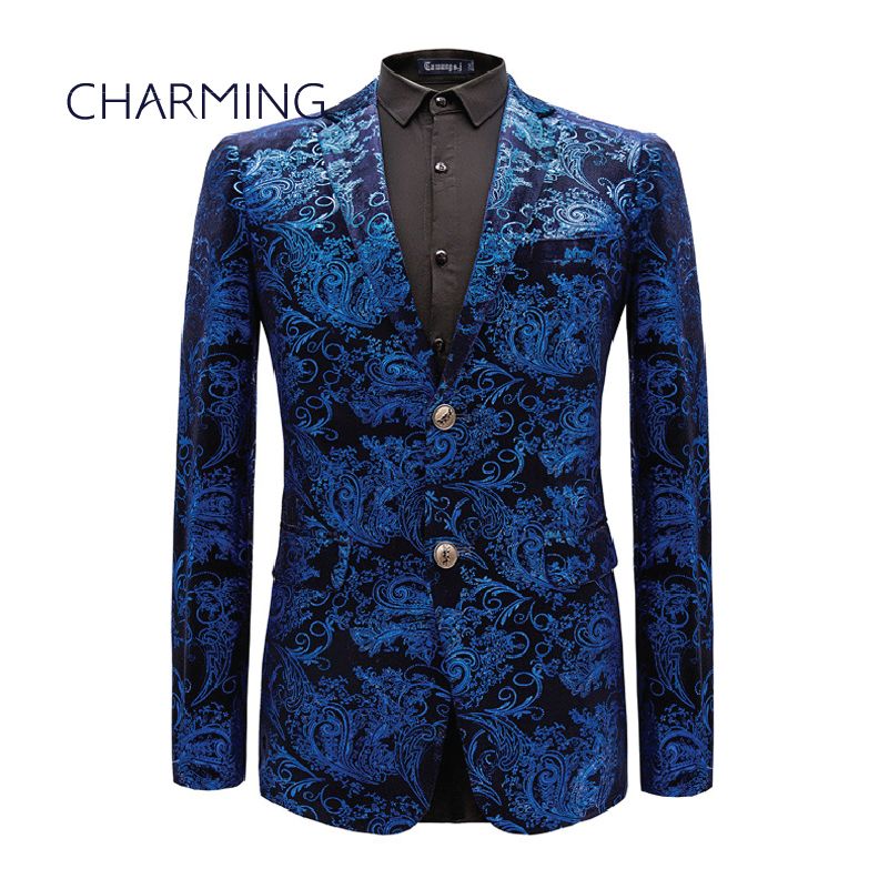 Acheter Costume Homme Bleu Fonce Haut De Gamme Personnalise Tissu De Velours Or Estampage Conception Dimpression Gentleman Robe Fit Chanteur Acteur Classique Costumes Pour Hommes De 73 37 Du Dressdesign Dhgate Com