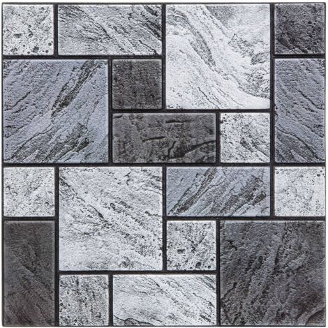 Decalmile 10 Pieces Stickers Carrelage 3d 28x23 5cm Noir Gris Argent Carrelage Adhesif Mural Cuisine Salle De Bain Carreaux De Ciment Mural Decoration