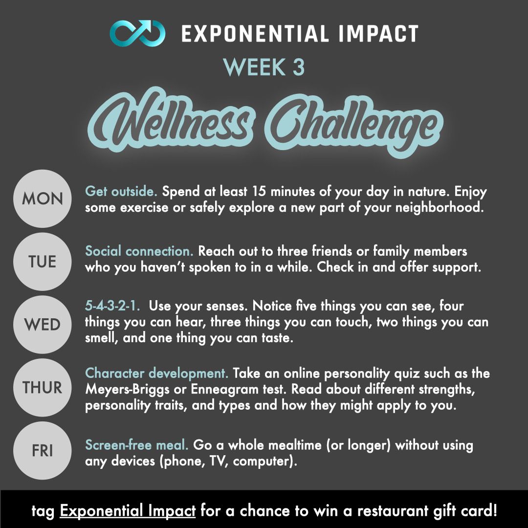 Exponential Impact These Are The Wellness Activities The Xi Staff Will Be Focusing On This Week Let Us Know What Been Working With Your Routine Supportthesprings T Co Zf4yw6oxtw