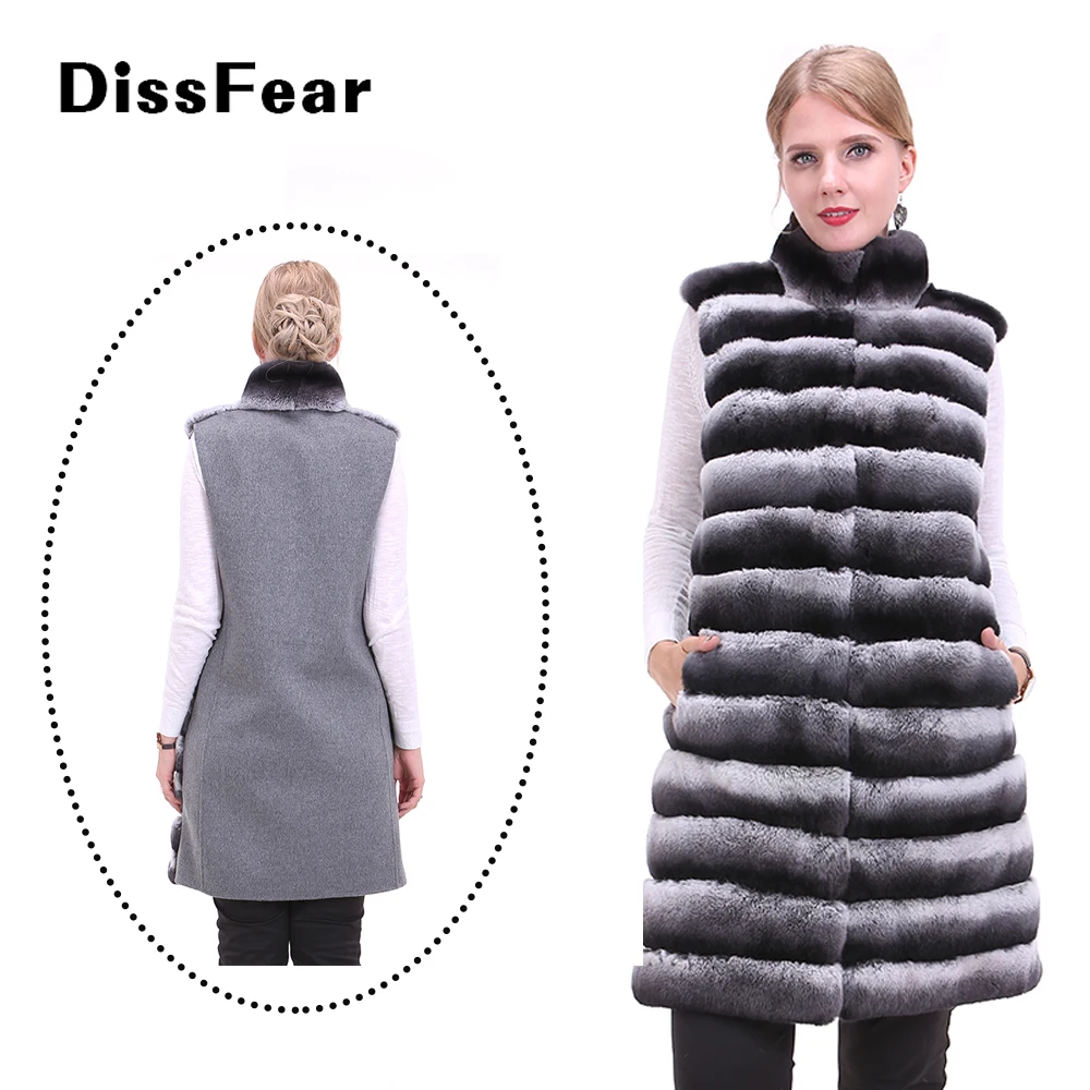 90 Cm Chinchilla Couleur Vraie Fourrure Gilet Femme Hiver Veste Cachemire Mandarine Col Long Gilet Naturel Rex Lapin Fourrure Manteaux Laine Aliexpress