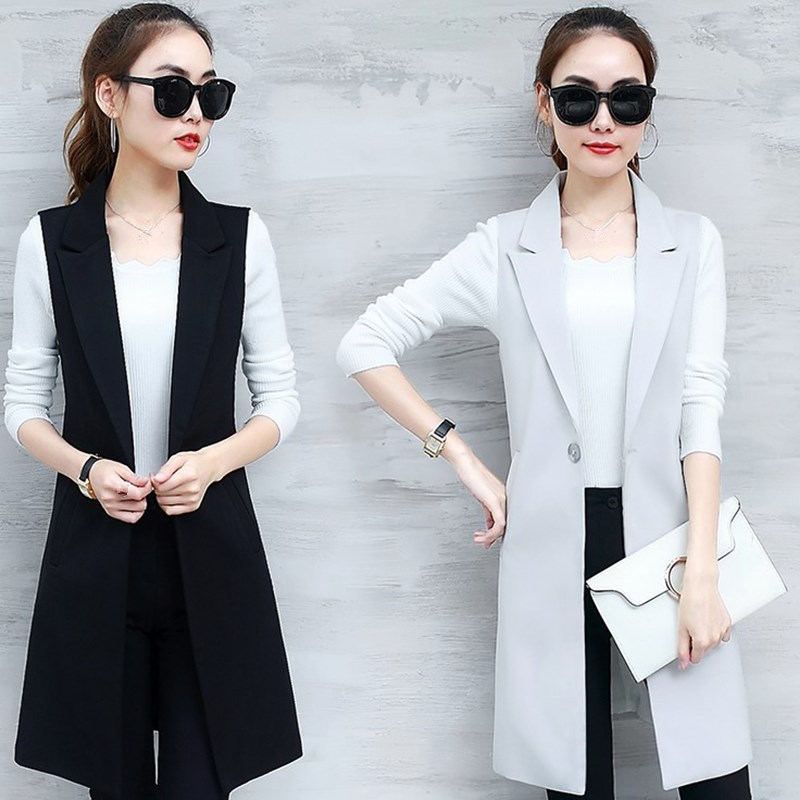 Acheter Costume Femme Gilet Printemps Ete Longue Gilets Femmes Noir Seul Bouton Bureau Dame Manteaux Casual Streetwear Veste Gilet Q1261 De 8 Du Charle Dhgate Com