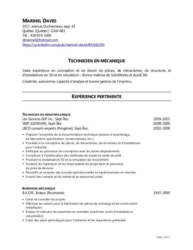 Exemple De Cv Dessinateur Solidworks Exemples Modeles De Cv