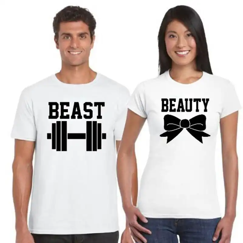 Women Men O Neck T Shirt Cotton Tops Couple T Shirt Beast Beauty 01 06 Letter Print T Shirt Dumbbell Bowknot Funny Graphic T Shirts Aliexpress
