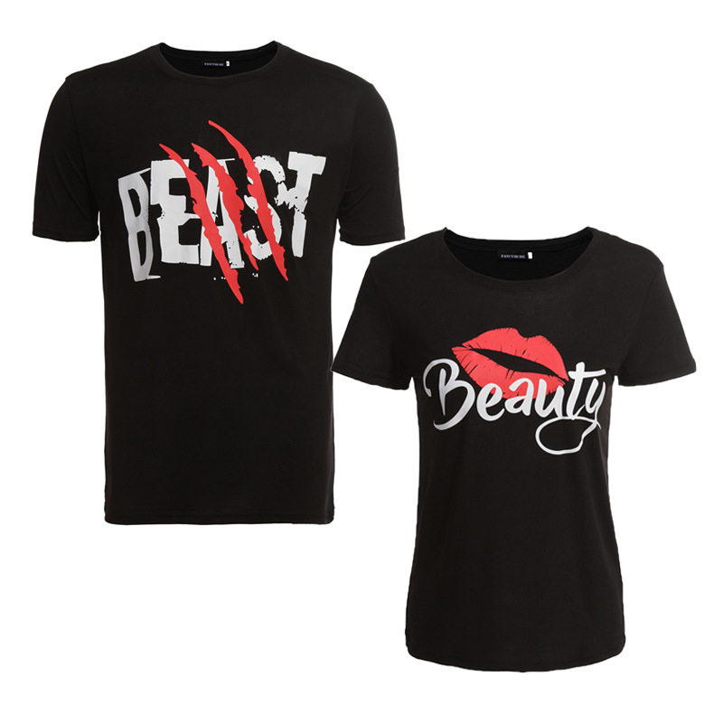 Beast Beauty Letter Print Couples Men And Women Short Sleeve T Shirt Fashion Letter New Style Tee Shirt Femme T Shirts Aliexpress
