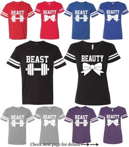 Couple Matching Jersey T Shirts Beauty Beast Graphic His Hers Design 2 Shirts Ebay