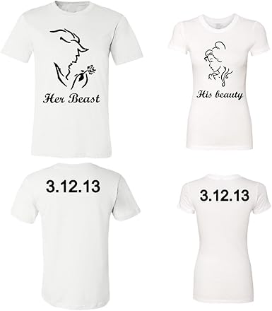 Amazon Com Her Beast His Beauty Customized Couple Shirts Custom Date On The Back Newlywed Anniversary Wedding Matching T Shirts Clothing