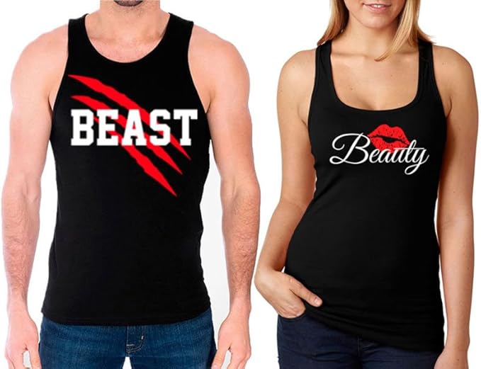 Amazon Com Sr New Beast And Beauty Tank Tops Matching Couple Shirts His And Her Tank Tops Love Shirts Clothing