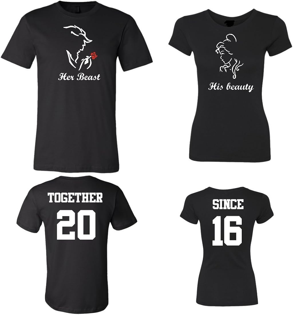 Amazon Com Her Beast His Beauty Customized Couple Shirts Custom Year Together Since Newlywed Anniversary Wedding Matching T Shirts Clothing