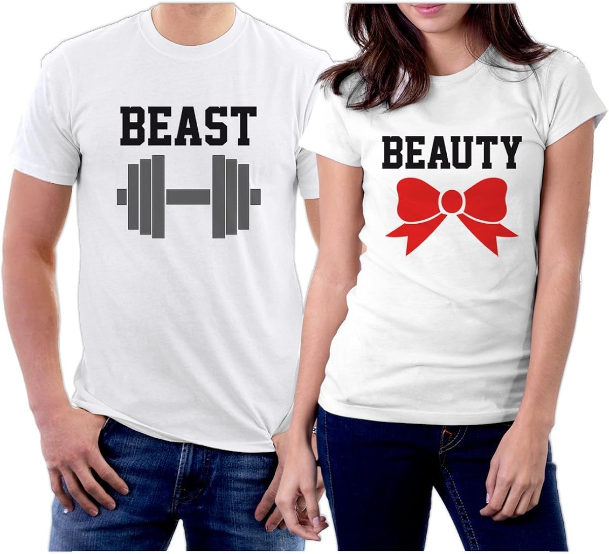 Amazon Com Beast Beauty Matching Couple Shirts His And Her T Shirts Tees Clothing