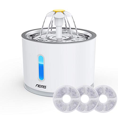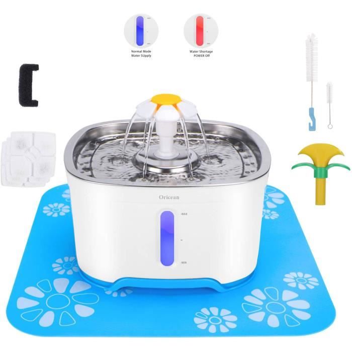 Vinsic Fontaine A Eau Pour Chat Et Petit Chien Fontaine A Fleur Pour Chat 2 4l Distributeur Eau Pour Chat Silencieux Avec 1 Filtre A Charbon Actif Et Plateau En Acier Inoxydable Veilleuse