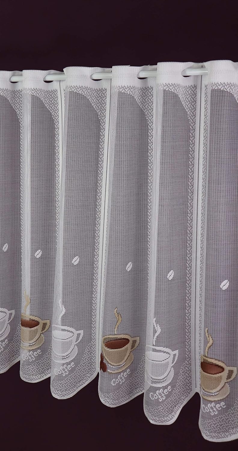 Albani Voilage Sur Mesure Jacquard Largeur Du Rideau Par Paliers De 15 Cm Au Choix Blanc Marron Panneau A Lamelles Cafe Espresso Brise Bise Hauteur 60 Cm Rideaux Brise Bise