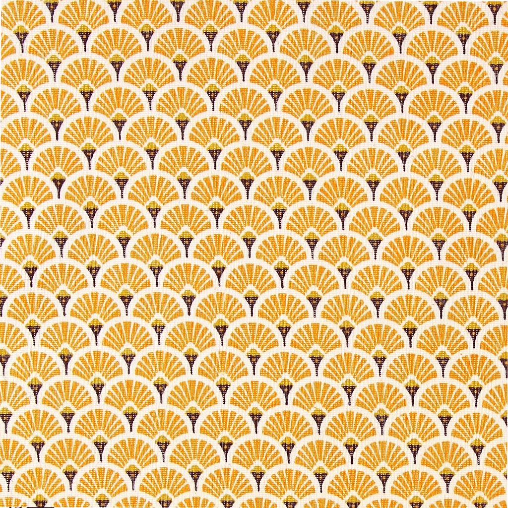 Tissu Cretonne 100 Coton Enduit Eventails Safran Dore Xcm Perles Co