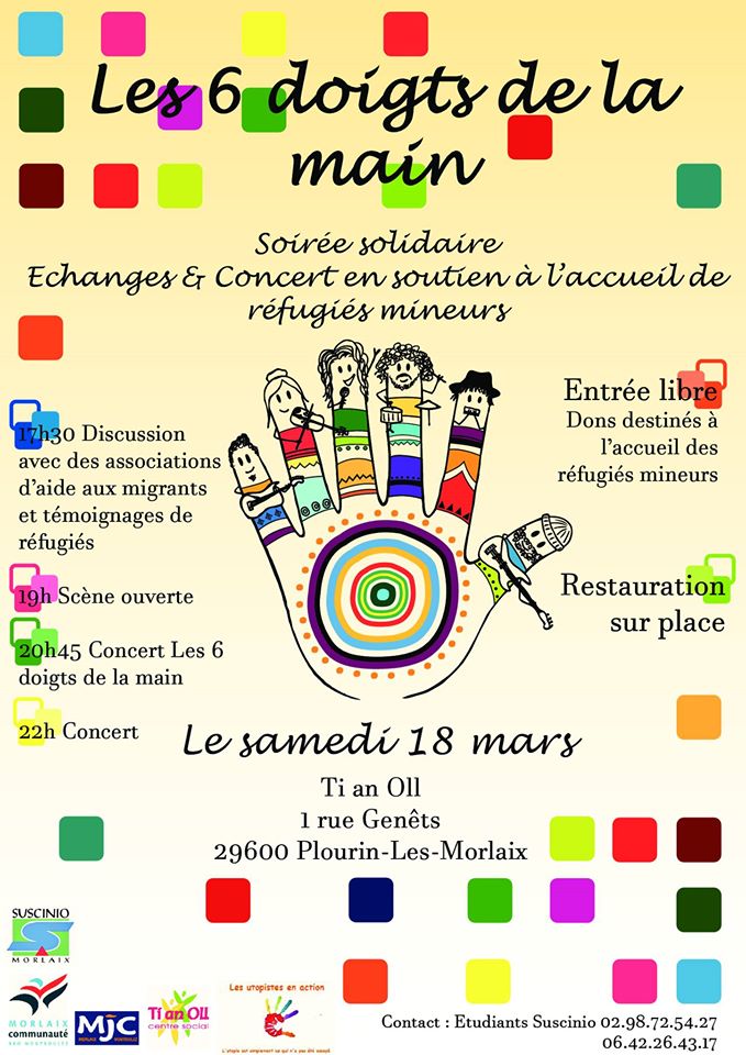 Soiree Solidaire Les 6 Doigts De La Main Samedi 18 Mars 17 A Ti An Oll Association Carre D As Morlaix Centre Social Morlaix Finistere