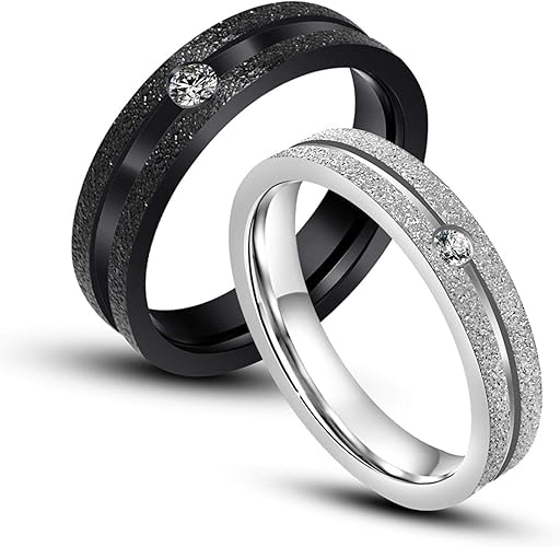 Ecojas Bague Couple Acier Inoxydable Mat Zircone Noir Blanc Alliance Homme Femme Fantaisie Amazon Fr Bijoux