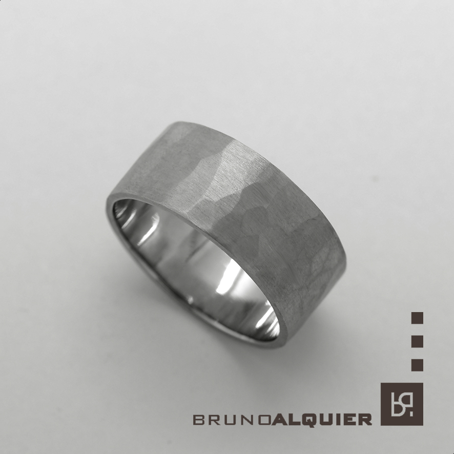 Alliance Ruban Martelee Etroite En Or Blanc Mat Bruno Alquier Createur Bijoutier Lyon