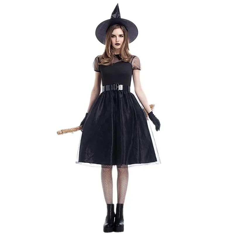 Johanna Giudice Vente Halloween Carnaval Party Black Mesh Robe Chapeau Gants Ensemble Sorciere Costume Charme Femme Cosplay Plus La Taille 3xl Pas Cher Prix