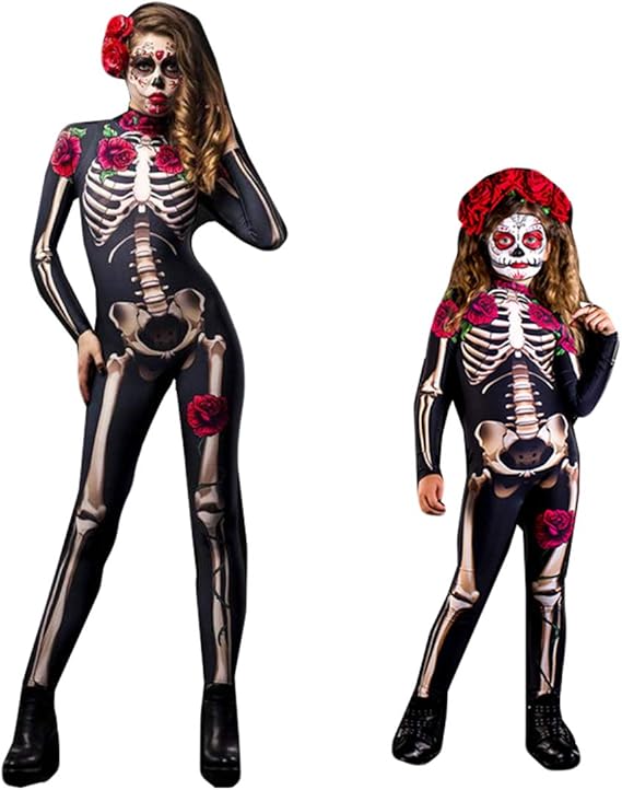 Wetry Costume Squelette Femme Enfant Cosplay Combinaison De Halloween Deguisement Carnaval De Noel Amazon Fr Vetements Et Accessoires