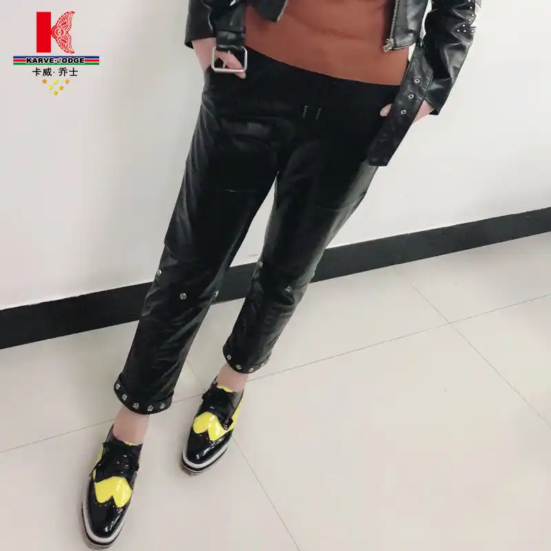 Pantalon Slim Simili Cuir Noir Femme Printemps Pure Pantalons Diviser La Fourchette Baggy Pas Cher