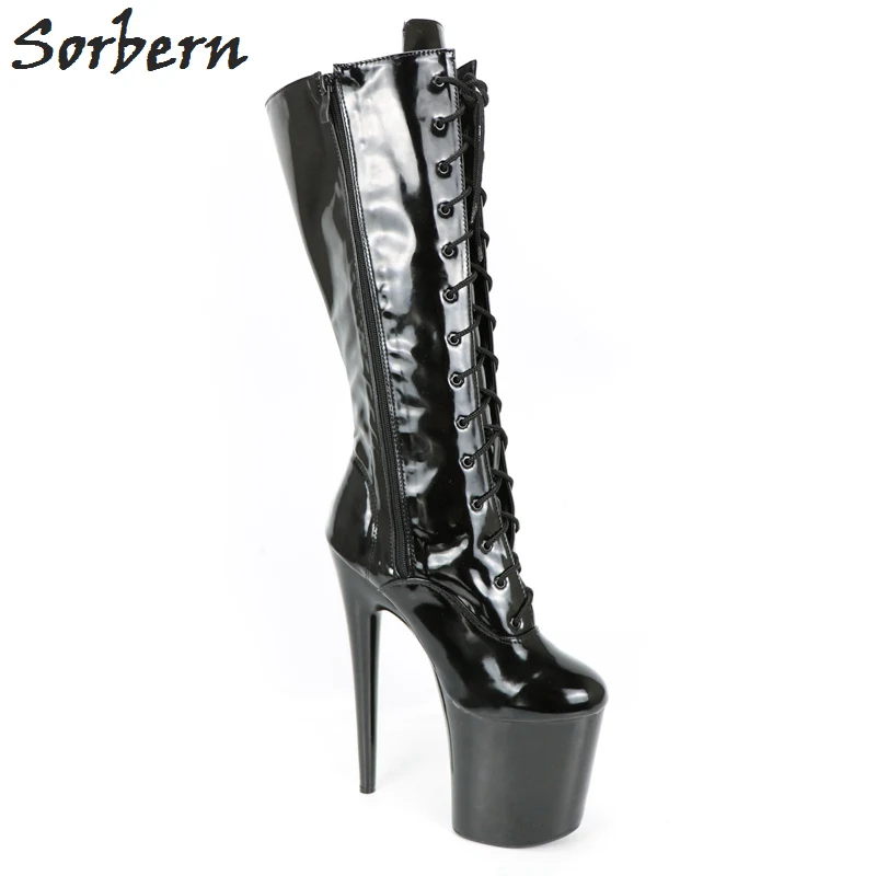 Sorbern Noir Genou Haute Brillance En Cuir Verni Bottes Personnalise Large Mollet Taille De Jambe Femme Botte Epaisse Plate Forme Talons Hauts Chaussures Unisexe Aliexpress