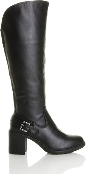 Ajvani Femmes Haute Talon Carre Boucle Large Mollet Bottes De Motard Cuissardes Taille Amazon Fr Chaussures Et Sacs