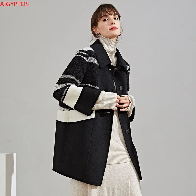 Double Face Laine Femmes Automne Et Hiver Nouveau Noir Et Blanc Couleur Correspondant Manteau De Laine Mi Long Manteau De Laine En Vrac Aliexpress