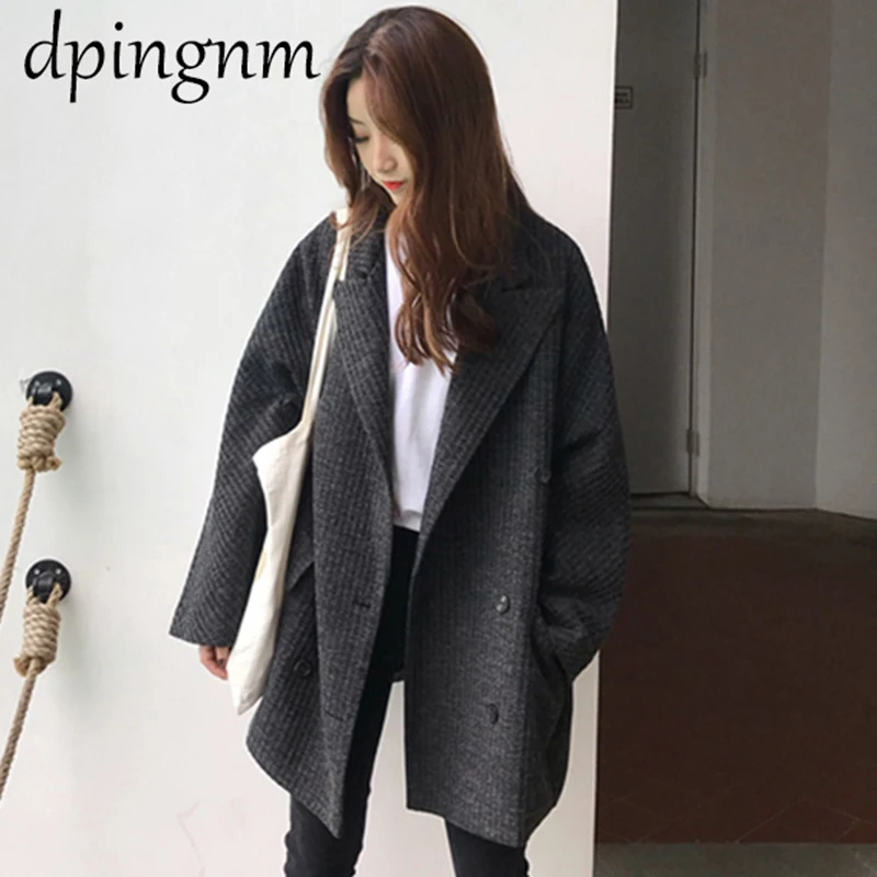 Longue Manteau En Laine Boutonnage Manches Longues Mode Oversized Femme Blouson Noir Manteaux Hauts