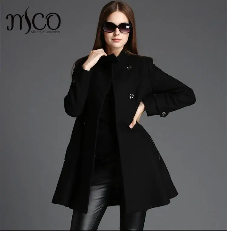 Manteau Mi Long Noir En Laine Esprit Retro Pour Femme