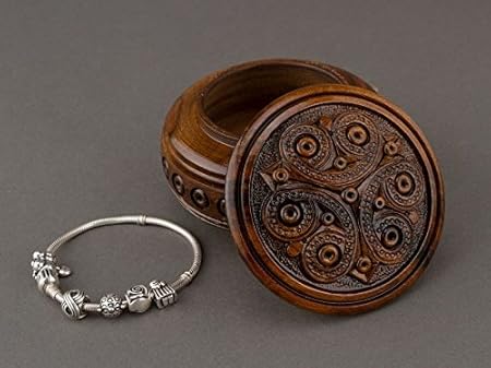 Fait A La Main Boite Ronde En Bois Sculpte Boite De Rangement Bijoux Idees En Madeheart Amazon Fr Cuisine Maison