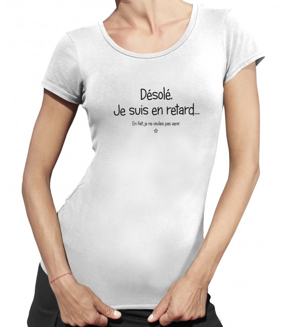 Tee Shirt Femme Message Desole Je Suis En Retard Teez Tee Shirt Humour Et Originaux