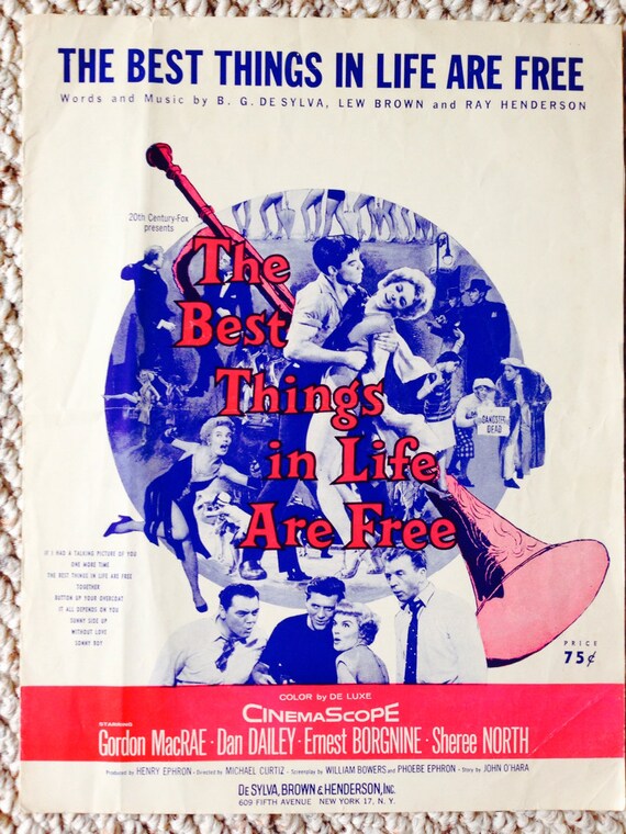 The Best Things In Life Are Free is once again the typical Hollywood musical biography where the main thing you come to hear are the songs The output from DeSylva,Brown&Henderson certainly gives you enough material Buddy DeSylva came from a theatrical family and as played by Gordon MacRae was a man of ambition who enjoyed high living. The best things in life are free” The song describes learning that a bond with another person is one of the “best things in life” Since the original musical, the song has been performed by many artists and regained popularity over and over throughout time Examples of The Best Things in Life Are Free. The best things in life are free Often the things that have the most value or quality cost nothing;.