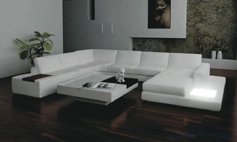 Livraison Gratuite Canape En Cuir Moderne Avec Lumiere Table Basse En Forme De U Pour Grande Maison Ensemble De Meubles S8558 Aliexpress