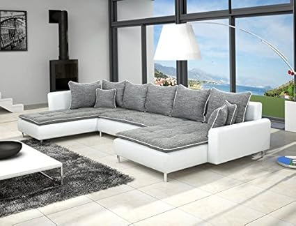 Tendencio Canape D Angle En U Dante 6 Places Gris Et Blanc Amazon Fr Cuisine Maison