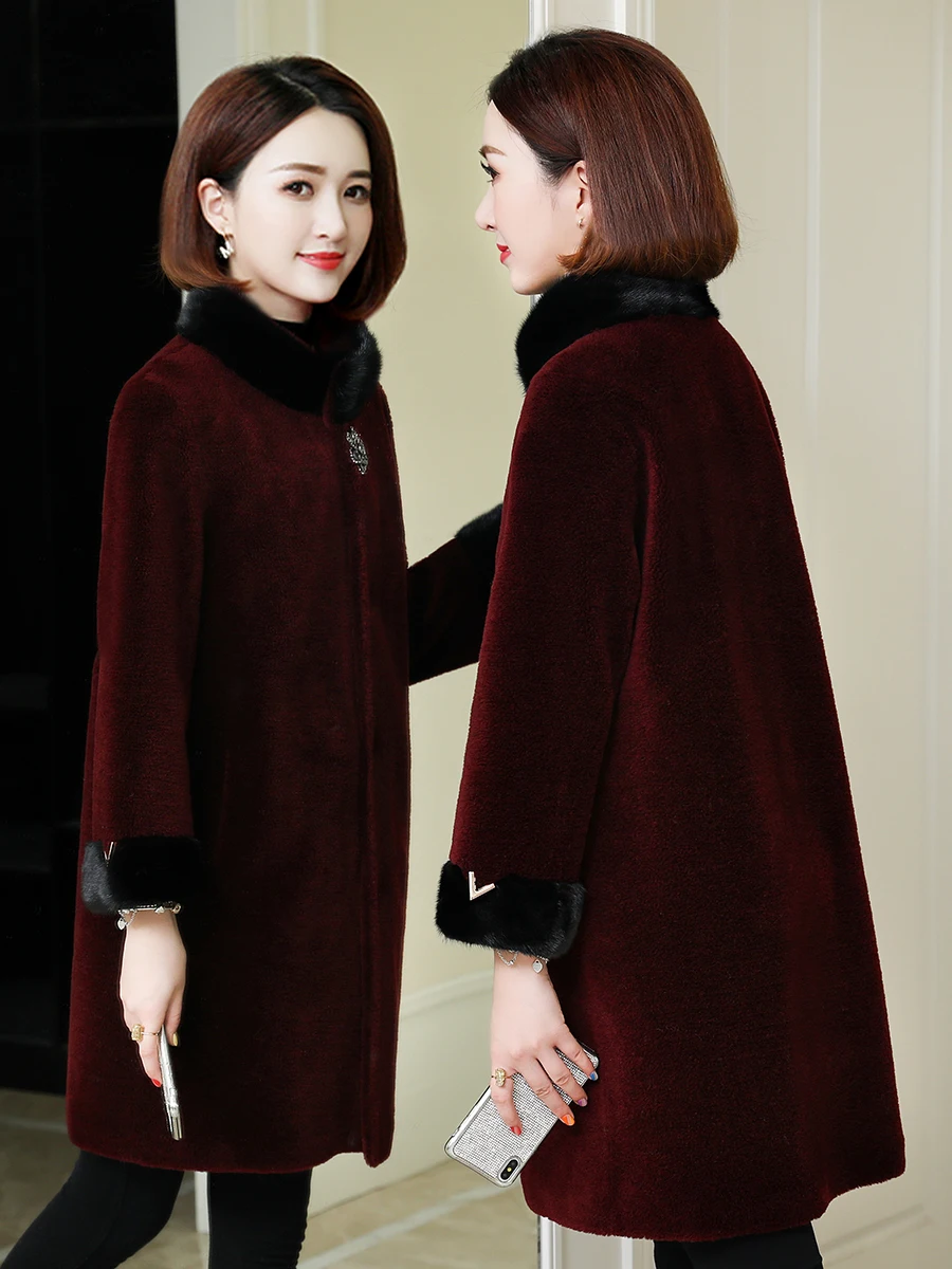 Reel Manteau De Fourrure Femmes Hiver Naturel Mouton Veste De Cisaillement Femmes Vintage Vison Col De Fourrure Manteau Long Chaud Laine Vestes Hiver Fc59
