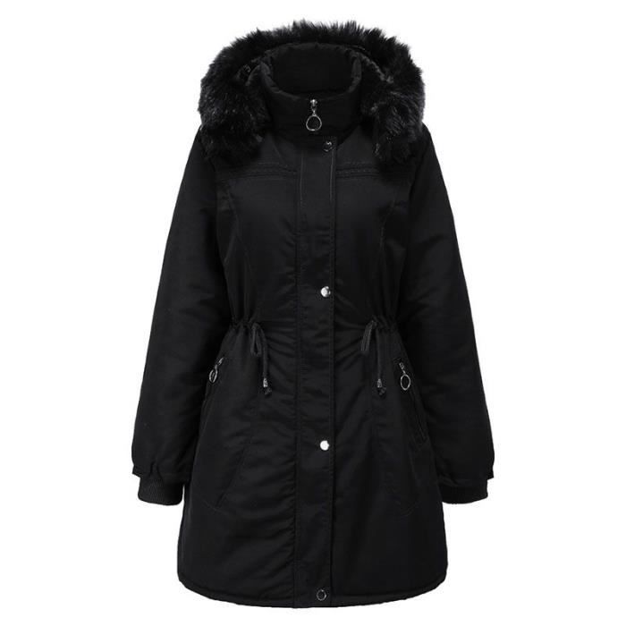 Manteau Hiver Femme Double Polaire Capuche Fausse Fourrure Mi Long Chaud Noir Achat Vente Manteau Caban Soldes Sur Cdiscount Des Le Janvier Cdiscount