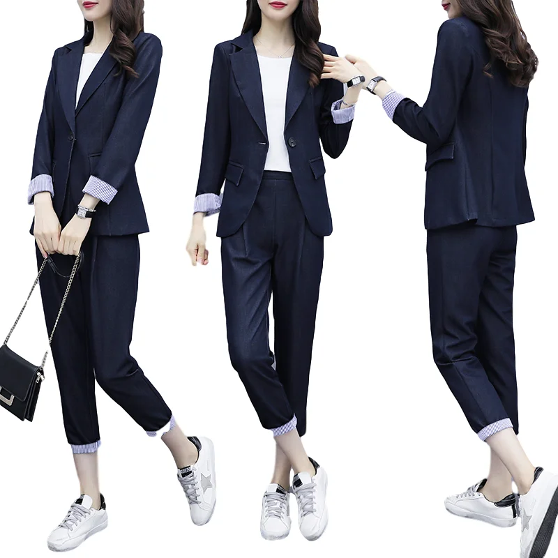 Femmes Pantalon Costumes Vintage Printemps Automne Femmes Pantalon Costume Bleu Marine Blazer Veste Pantalon Tenue De Bureau Femmes Costumes Ensembles Feminins Aliexpress