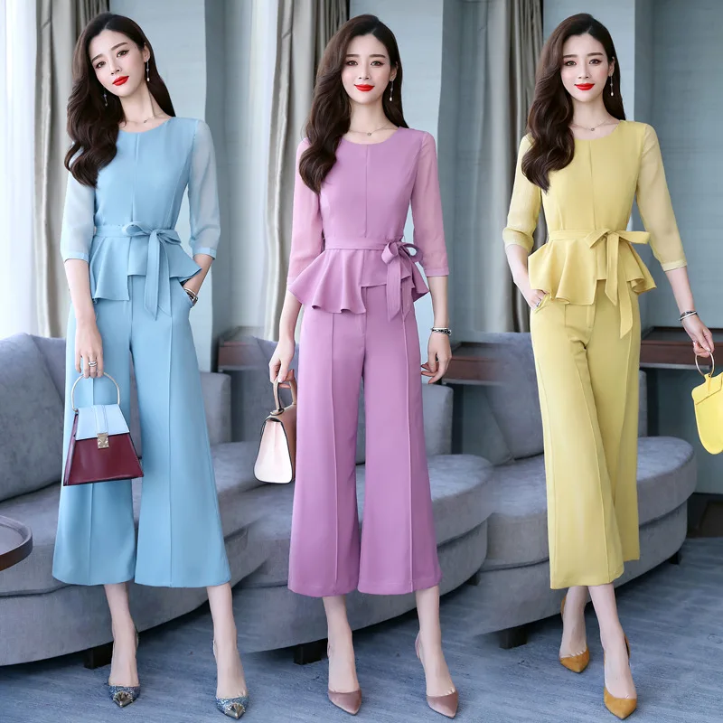 Mode Femmes Ensembles Tenue Decontractee Col Rond Haut A Volants Et Pantalon A Jambes Larges Deux Pieces Vintage Vetements Costumes Femmes Pantalons Costumes Aliexpress