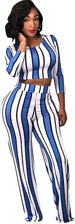 Femme 2 Pieces Top Crop Set Et Pantalon Vintage Fashion Vetements De Fiesta Party Rayures Tenue De Soiree Manches Courtes Rond Col Slim Sans Ventre Haut Taille Haute Pantalons Amazon Fr Vetements Et