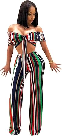 Femme 2 Pieces Set Crop Pantalons Longue Casua Top Et Moderne Cocktail Party Vintage Rayures Tenue De Soiree Manches Courtes Sangle Sans Bretelles Haut Large Jambe Pantalon Amazon Fr Vetements Et Accessoires