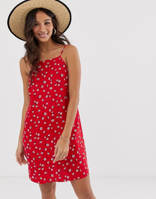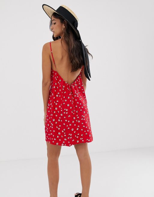 Asos Design Robe D Ete Droite Coupe Courte Avec Decollete Dans Le Dos Et Imprime Petites Fleurs Asos