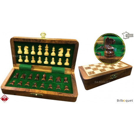Jeu d'échecs magnétique pliant d'une dimension de 25 x 25 cm, avec surface de jeu en bois laqué, origine Inde. Profitez de notre recherche par critères pour filtrer les jeux affichés :. Finition brillante, verni à l'extérieur et doublé de feutre à l'intérieur pour le rangement des pièces.