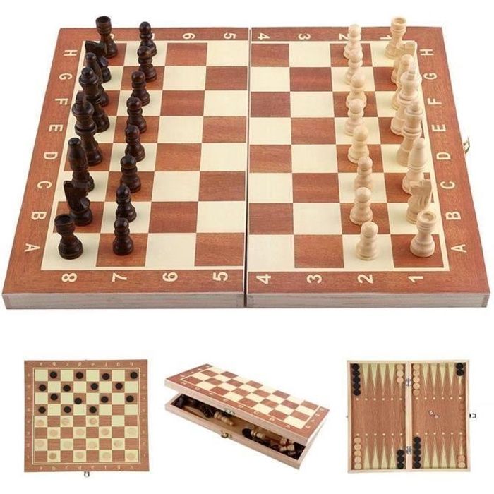 Jeu Echecs 3 En 1 Bois Pliable Enfant Adultes Ebay