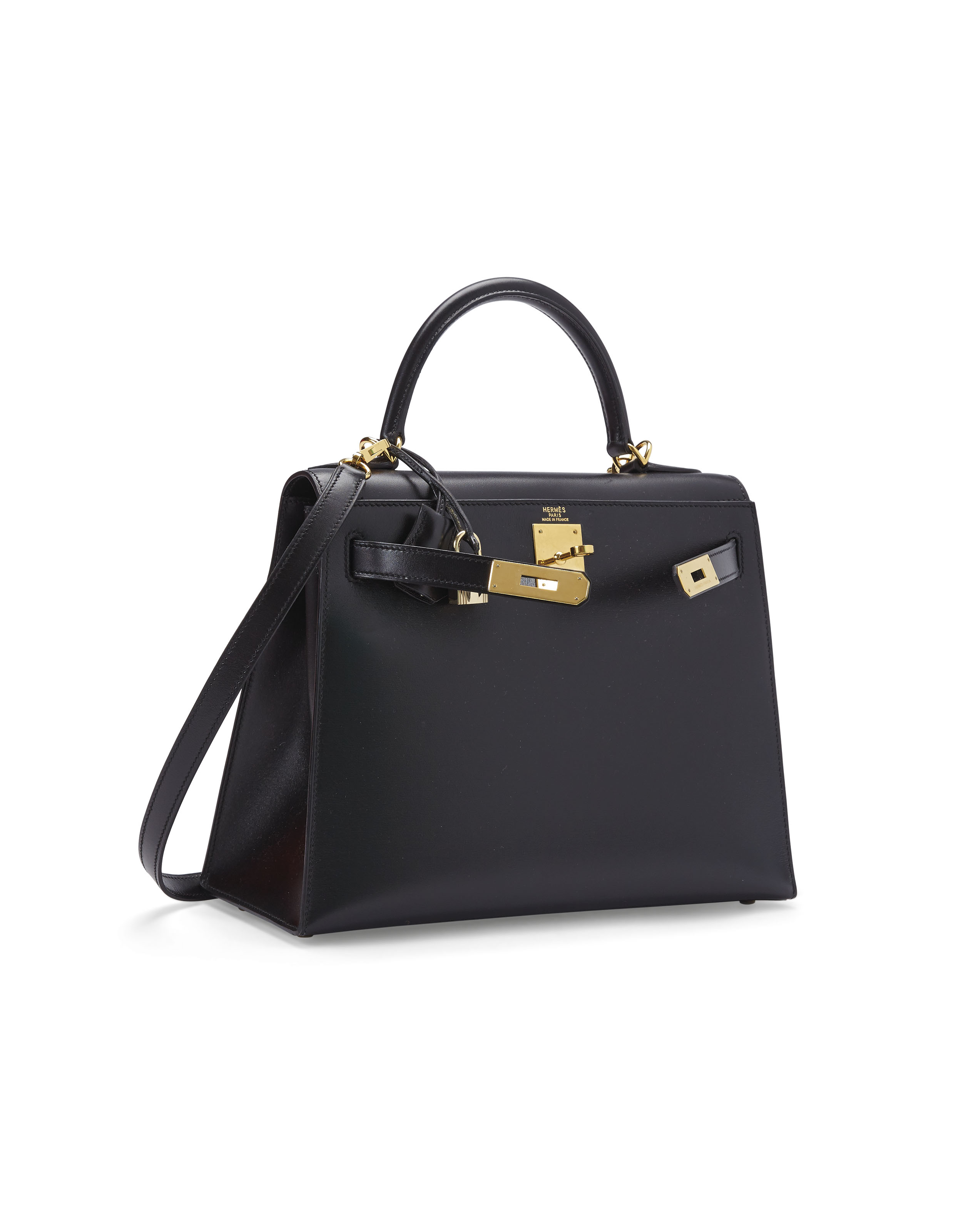 Sac A Main Hermes Kelly Sellier 32 En Cuir Box Noir