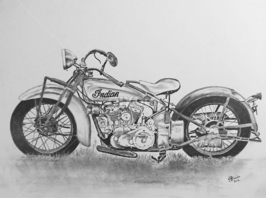 19 Indian Motorcycle Graphite Pencil Sketch Drawing By Scott D Van Osdol