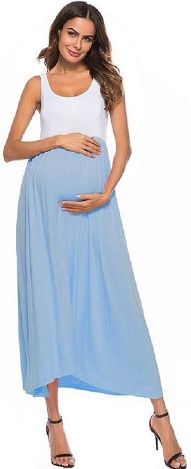 Robe Robe Longue De Grossesse Pour Femme Enceinte Robe D Allaitement D Ete Sans Manches Solide Clydbs You Bleu Achat Vente Robe Cdiscount
