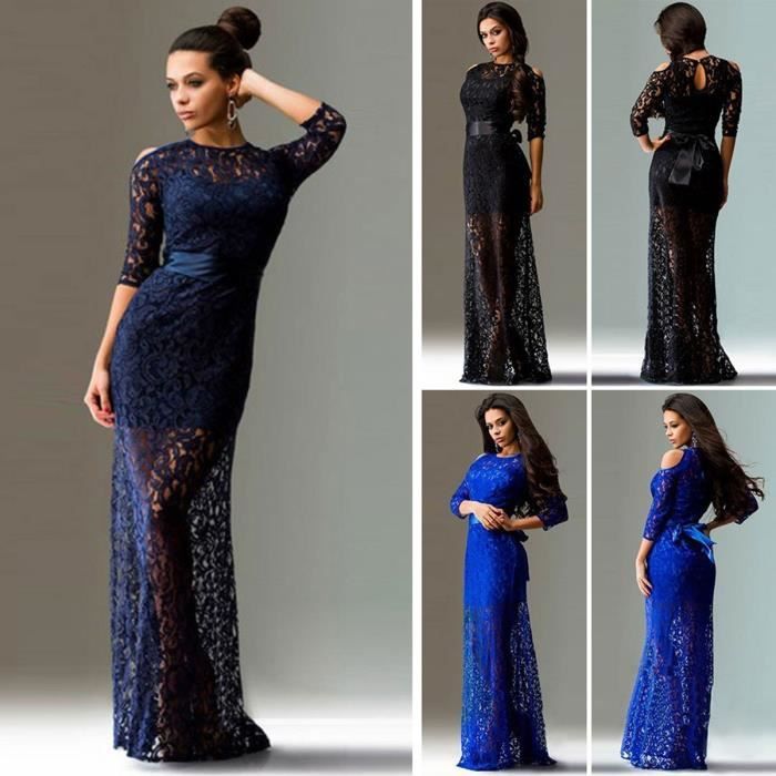 Robe De Soiree Longue Bleu Dentelle Achat Vente Pas Cher