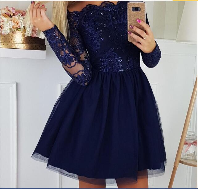 Robe De Cocktail Bleu Marine Manches Longues Dentelle Ref C1910 Robe De Cocktail